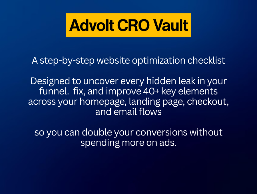 A step-by-step checklist to fix hidden funnel leaks and optimize 40+ key elements across your landing page, homepage, checkout, and email flows, so you can boost conversions without spending more on ads.